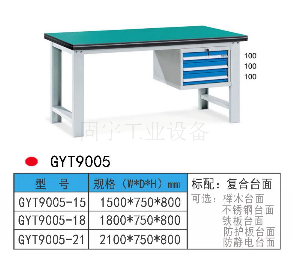 工作臺采用優質冷扎板精工制作而成,堅固的工作桌框架,牢固平穩,可使工作桌承重1000kg;多種工作桌面選擇,可配合不同使用的要求;工具吊柜(箱),側柜(箱)燈架,調節腳杯,,外形美觀;層板,抽屜質量上乘,承重大,抽屜內可根據需要任意分隔;節約空間,適用性強。 范圍 工作臺適合于模具、鉗工、檢測、維修、組裝等各種不同應用場合,具有良好的耐腐蝕性,耐臟性,抗沖擊性和承重能力強。桌面經特殊處理,具有防腐、抗沖擊力強等特點,多種桌面的選擇,可配合不同的使用要求;所配置的抽屜、柜門方便使用者存儲工具;桌角上預留電源孔,方便安裝電源插座。工作臺(桌)分為輕型(可承重300公斤),中型和重型工作臺(桌)可承重1000公斤及特制的工作臺。可根據需要靈活地配置各種吊柜、單柜、雙柜等,可加裝掛板,電器板,燈頂板、調節腳杯,輪子,擱板等桌上部件,具有多種選擇,能夠滿足各種工位的需求。 工作臺材質采用優質冷軋鋼板,表面采用靜電噴涂處理而制成,堅固的工作桌框架,牢固平穩,可使工作桌臺面均勻承重達到1000kg。桌面有多種材質組成,適用于各行業辦公場所。可配合工具柜,吊柜,掛板,單開門柜使用。抽屜、承辦承重大,性能好,抽屜里可根據需求配置分隔條 工作臺分類:根據臺面的不同分為:櫸木工作臺、鋼板合成工作臺、防靜電工作臺、高分子工作臺;根據承重的不同分為:輕型工作臺、中型工作臺、承重型工作臺;根據功能的不同分為:多功能工作臺、帶吊柜工作臺等等。 臺面優勢 復合臺面特性臺面平整度高,撓曲度為0.8mm。表面2mm厚度為高分子材料,使臺面耐酸堿、耐磨、耐油。臺面采用高壓纖維板,使臺面更具有抗沖擊性。特別的圓弧桌角,不易受撞擊損壞。高強度塑膠包邊堅固、實用、不易損壞、不易脫落。櫸木桌面特性桌板使用櫸木與防水膠經加壓制造而成。表面光滑平整,美觀不易變型,耐油、耐熱、耐酸、耐堿,適合一般工廠作業與精密模具維修,儀器置放與檢測等用途。不銹鋼包面特性桌板使用高壓合成板,表面包1-2mm砂面不銹鋼板,以達美觀耐用。耐高溫、耐磨損、耐油、使用壽命長,為多功能桌板,適合一般工廠、食品業、研究室、電子廠無塵室使用。輕型工作臺可承重300kg-500KG防火板臺面特性輕巧、美觀、耐磨、防火。層壓板臺面特性工作桌面平整,變型小,強度高,抗沖擊性好。 標準顏色 產品顏色 標準的顏色可分為6種:淺藍色(RAL5015), 電腦灰(RAL7035), 機床綠(RAL6011),深藍色(RAL5017)。