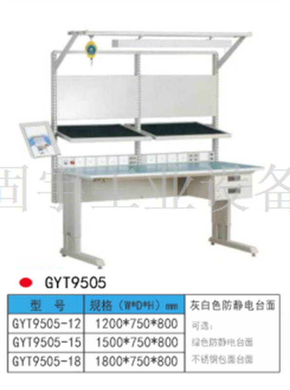 結構 1、防靜電工作臺臺面一般由防靜電三聚氰胺高壓裝飾層壓板(俗稱防靜電防火板)為表面材料與木質材料復合制成。木質材料一般為刨花板,通過嵌入導電體如鋼柱,再通過接地線接地,這樣桌面靜電荷通過接電線順利地泄放到大地。2、也有一些工作臺是不銹鋼的,桌面需要鋪一塊防靜電桌墊,桌墊通過接點線連入大地,達到瀉放靜電的效果。3、防靜電工作臺就是能滿足用戶的普通工作臺功能的基礎上,增加了防靜電功能,也就是如何將靜電瀉放掉!潔凈工作臺 潔凈工作臺是一種層流局部空氣凈化設備,采用可調風量風機系統,在調節風機工作臺后,可使潔凈工作區的風速始終保持在理想范圍內。(可根據客戶要求配備壓力表、可隨時掌握高效過濾器阻力變化情況。 工作臺結構特點 可分為輕型,中型,重型工作臺。1、采用優質鋼板專用模具用輥扎工藝成型,并通過先進的自動化靜電噴涂工藝進行表面處理。 2、根據用戶的承載要求,可選擇不同形狀的桌腳。3、根據用戶要求,工作臺桌面可選擇:高分子復合桌面、防火板桌面、不銹鋼包面、鐵板合成面、櫸木桌面、橡木層壓板左面、防靜電桌面、電木板貼面等 。4、桌上可配照明架、吊架、擱板、方孔掛板、百葉掛板、動力電源插座、電器盒、零件盒掛條等,滿足用戶不同的需求。桌腳上預留安裝孔,方便客戶安裝電源插座。5、桌下可選配各種類型的工具柜,加裝工具柜后,更能合理地利用空間,存放保護工具??芍苯釉诠ぷ髯郎霞友b臺鉗。滿足用戶裝載物品的需求。6、各種類型的工作桌均采用組合式設計、拆裝組合容易且穩固、耐用。